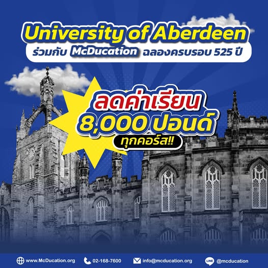 University of Aberdeen ฉลองครบรอบ 525 ปี ลดค่าเรียนสูงสุด 8,000 ปอนด์ ทุกคอร์ส