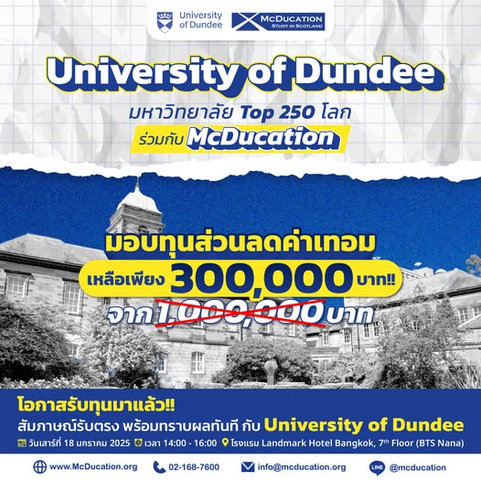 University of Dundee มอบทุนส่วนลดค่าเทอม